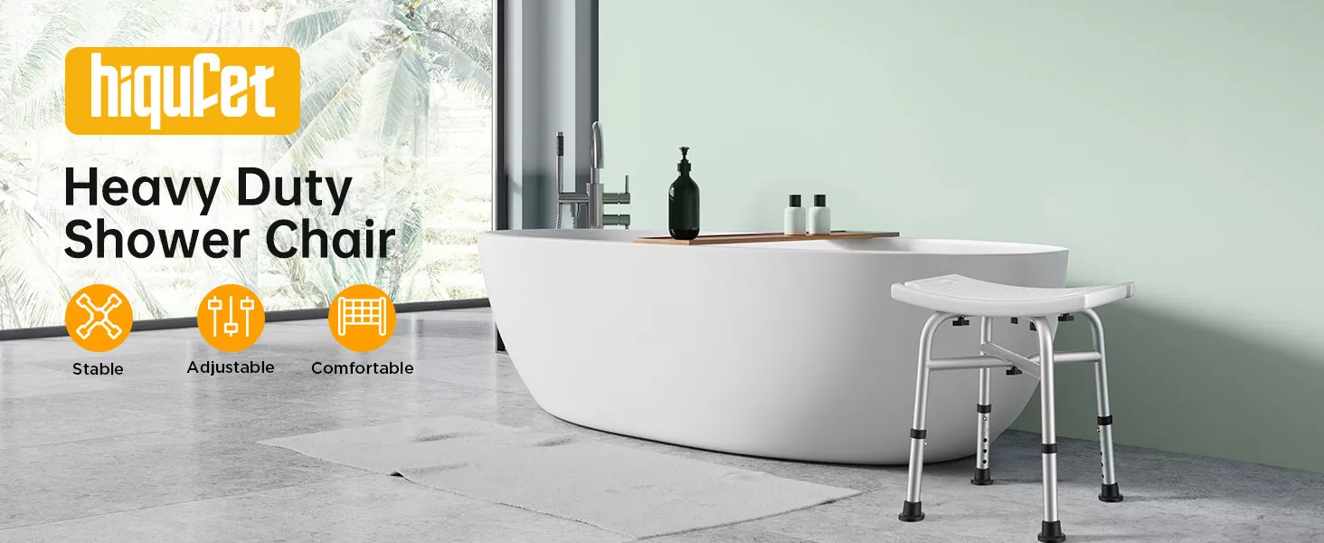 ▶Safty & Stability: Our shower chair lab-tested can support up to 450 lbs, we recommend 350 lbs weight capacity for optimal comfort. Hiqufet heavy duty shower chair features crossing-brace, obtuse angle legs and suction feet, enables anyone who has decreased balance; physical strength or mobility difficulties to use shower chair for inside shower safely and independently while sitting